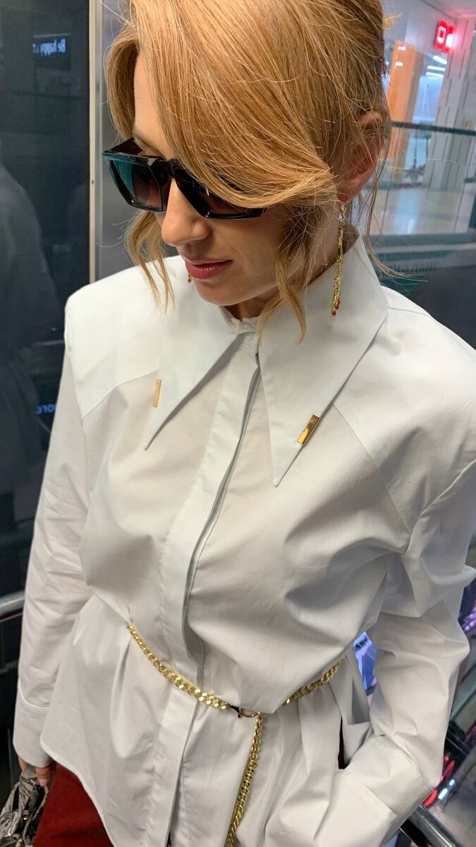 Образ от стилиста Юлии Бондарь🤩 Достаточно сложный и наполненный деталями, которые хочется рассматривать: рубашка — сама по себе яркая и эффектная из-за своих особенностей кроя и множественных декоративных деталей, яркие брюки из искусственной кожи — притягивают взгляды, а обувь и сумка из кожи питона — хороши в сочетании с насыщенным бордовым. Все эти вещи удачно комбинируются вместе, но также идеальны и по отдельности: благодаря каждой из них можно создать отличный повседневный стильный образ и выглядеть невероятно стильно 🤩