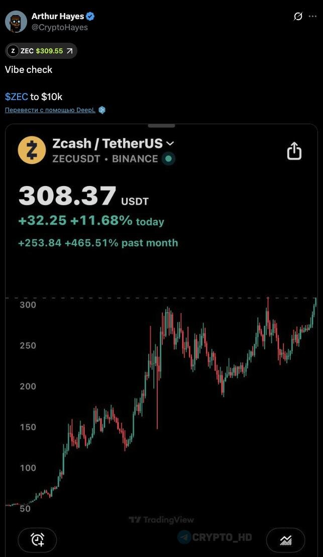 🤹 Артур Хейс верит в рост токена #ZEC до $10,000 - X