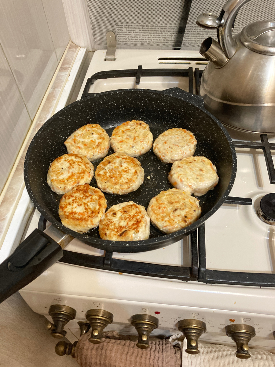 Все смешать, дать постоять минут 20. Сформировать котлеты и обжарить на среднем огне до румяной корочки. Готово! Вы получаете не 8, а целых 12-14 полноценных, больших, сочных и очень вкусных котлет.