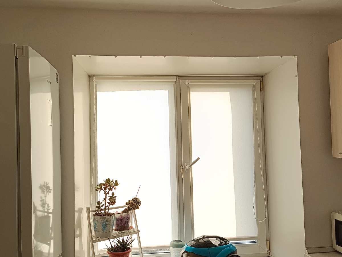 Есть окно ширина 144см. Ищем центр и делаем метку. Клеим кусочек малярного скотча и на нем ставим метку центр.