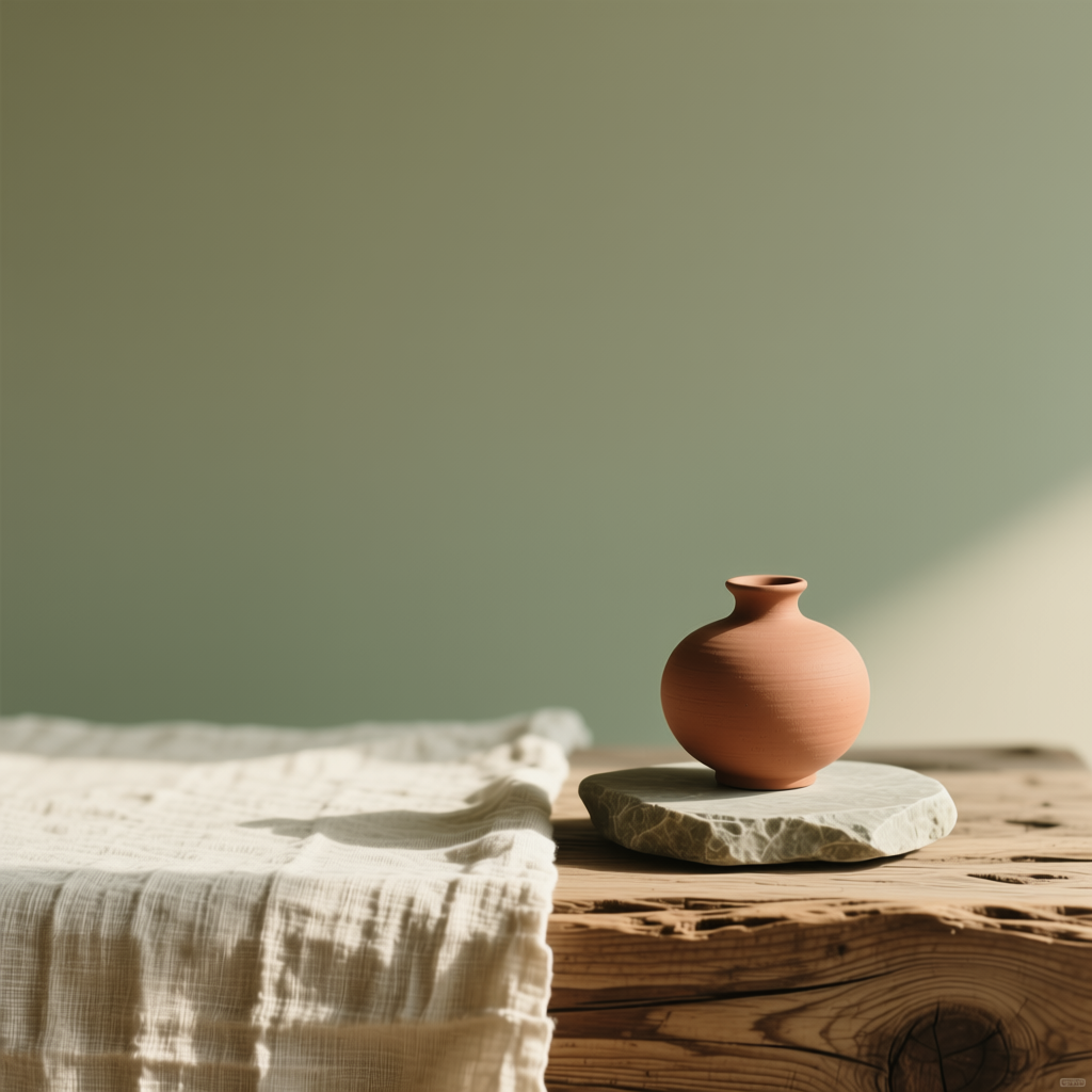 [Объект, связанный с вашей темой] на фоне натуральной текстуры (лён, дерево, камень), мягкий рассеянный дневной свет, палитра: [ваши 2–3 цвета], аналоговая фотография с лёгкой зернистостью, пустое пространство [слева/сверху], настроение — [ваше ключевое чувство], без текста, фотореализм, 4K