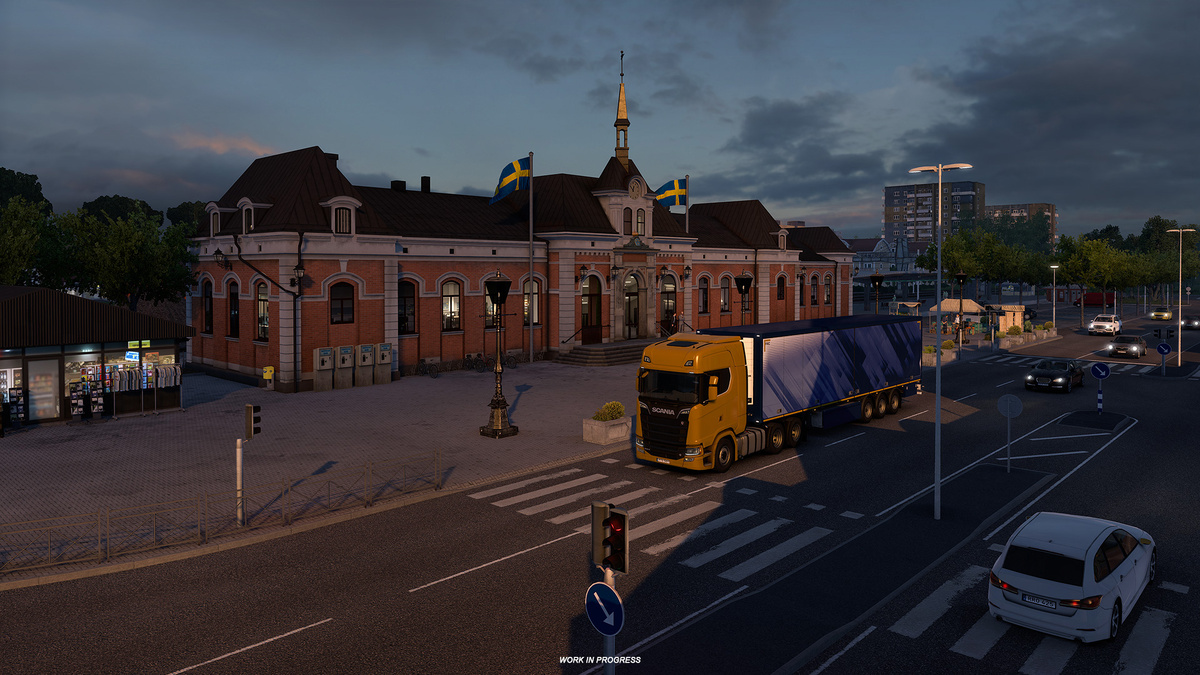 Работа над проектом Scandinavia Refresh для Euro Truck Simulator 2 продолжается, и сегодня мы рады представить ещё одну локацию, которую вы сможете посетить — город Карлстад! Карлстад расположен в центральной части Швеции и играет важную роль в соединении разных регионов страны. В рамках проекта Scandinavia Refresh город был добавлен в игру — Карлстад построен с нуля, а его окрестности переработаны, чтобы соответствовать качеству и стандартам наших более новых регионов карты. Мы не будем раскрывать все детали, но Карлстад славится множеством узнаваемых достопримечательностей и интересных мест, которые придают городу особое очарование. Во время поездки вы сможете проезжать мимо оживлённого железнодорожного вокзала, культурных и спортивных центров, уютных гостиниц и различных общественных зданий, создающих атмосферу настоящего шведского города. А любители живописных маршрутов смогут насладиться красивыми загородными дорогами, идеально подходящими для неспешных доставок. Кроме того, в окр