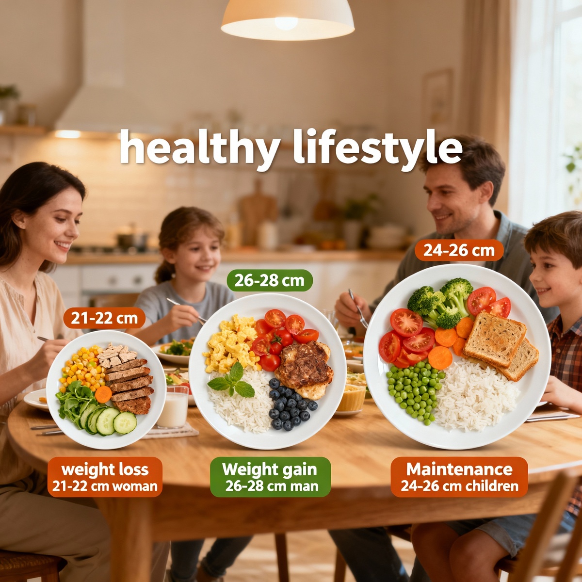 - Тарелка для поддержания: 24-26 см (для детей или для тех, кто просто хочет быть здоровым)