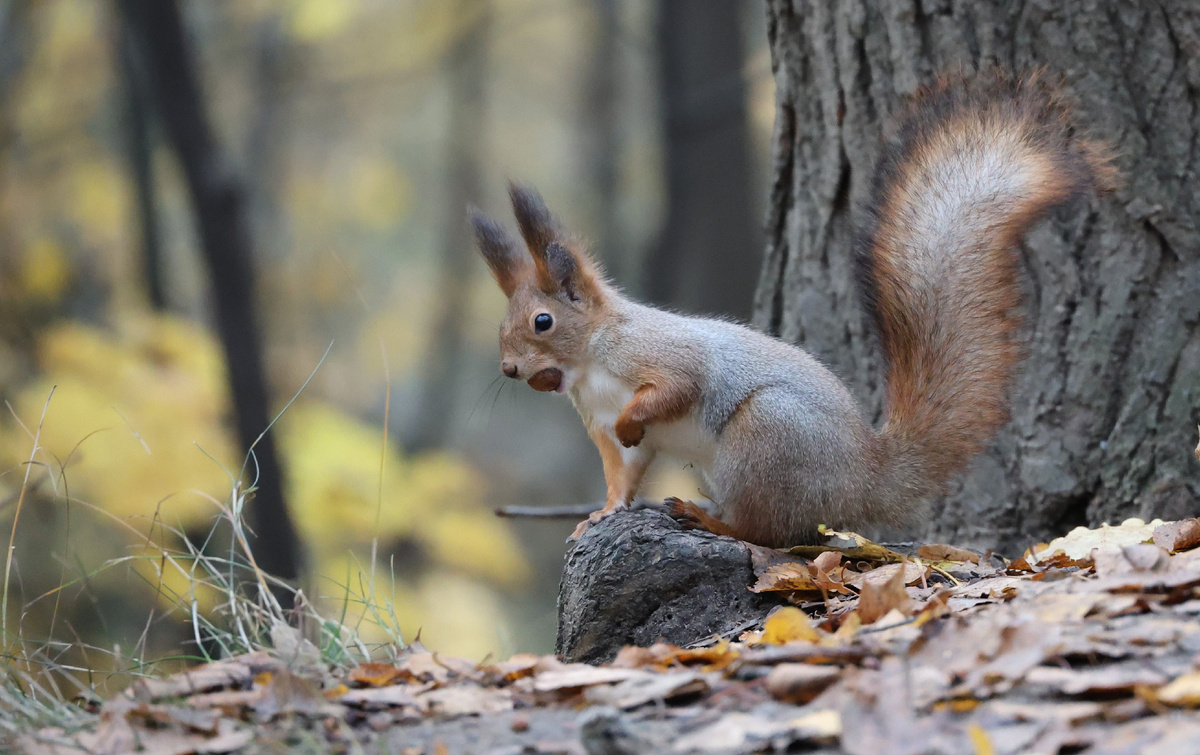 Фото мышей в листве, это сильный кроп (обрезка фото по краям). Снимал мышей в сумерках, поэтому фото не очень. Выложил фото белок которые интересны с моей точки зрения.