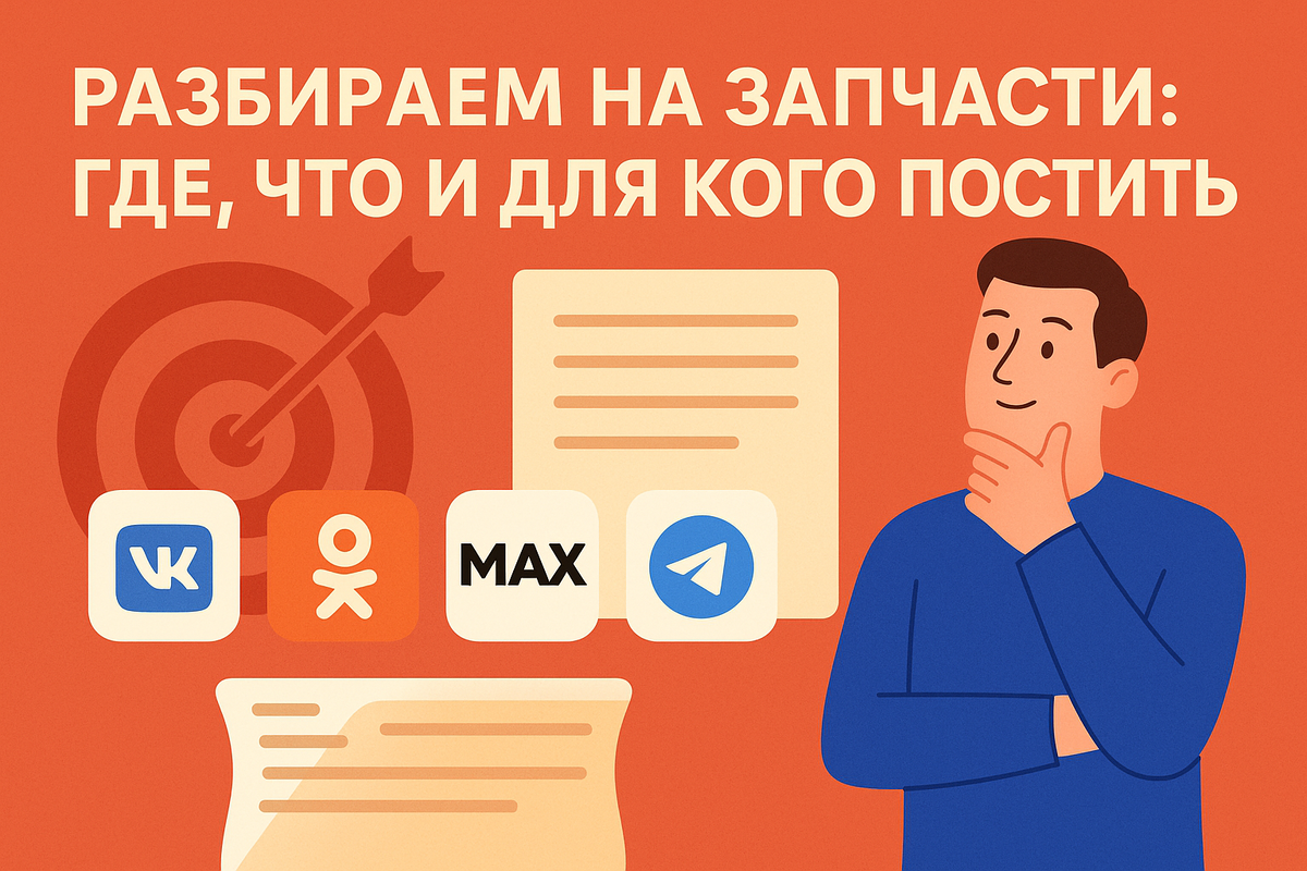 🎯 Публикуете один и тот же пост везде? 🚫 Вы сливаете впустую 80% потенциала платформ. Ловите шпаргалку по ВК, ОК, MAX и Telegram! 📚 👥 Аудитория: Широкий охват, ядро — 25-45 лет. Здесь все: от школьников до родителей и коллег. 💬 Тематики: Развлекательный контент, мемы 🤡, опросы, личные истории, новости бренда, конкурсы. Идеально работает ностальгия и юмор. 📌 Форматы: