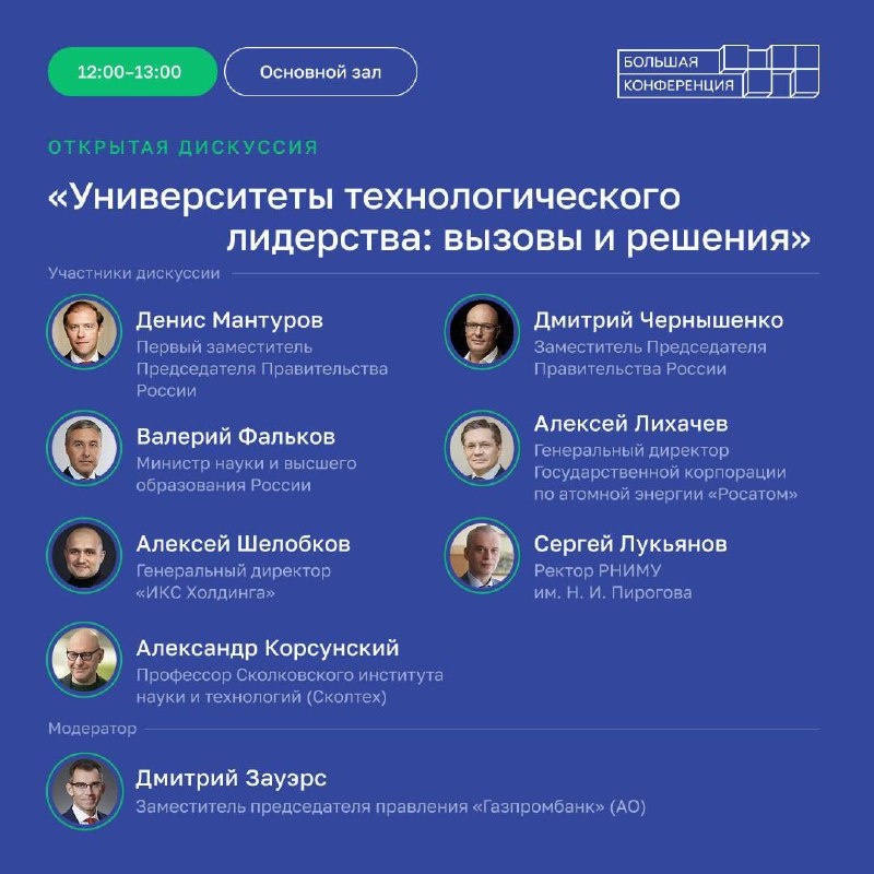 ΡΠ½ΠΈΠ²Π΅ΡΡΠΈΡΠ΅ΡΠΎΠ², Π° ΠΈΠΌΠ΅Π½Π½ΠΎ: β ΠΠ΅Π½ΠΈΡ ΠΠ°Π½ΡΡΡΠΎΠ², ΠΏΠ΅ΡΠ²ΡΠΉ Π·Π°ΠΌΠ΅ΡΡΠΈΡΠ΅Π»Ρ ΠΡΠ΅Π΄ΡΠ΅Π΄Π°ΡΠ΅Π»Ρ ΠΡΠ°Π²ΠΈΡΠ΅Π»ΡΡΡΠ²Π° Π ΠΎΡΡΠΈΠΉΡΠΊΠΎΠΉ Π€Π΅Π΄Π΅ΡΠ°ΡΠΈΠΈ; β ΠΠΌΠΈΡΡΠΈΠΉ Π§Π΅ΡΠ½ΡΡΠ΅Π½ΠΊΠΎ, Π·Π°ΠΌΠ΅ΡΡΠΈΡΠ΅Π»Ρ ΠΡΠ΅Π΄ΡΠ΅Π΄Π°ΡΠ΅Π»Ρ ΠΡΠ°Π²ΠΈΡΠ΅Π»ΡΡΡΠ²Π° Π ΠΎΡΡΠΈΠΉΡΠΊΠΎΠΉ Π€Π΅Π΄Π΅ΡΠ°ΡΠΈΠΈ; β Π’Π°ΡΡΡΠ½Π° ΠΠΎΠ»ΠΈΠΊΠΎΠ²Π°, Π·Π°ΠΌΠ΅ΡΡΠΈΡΠ΅Π»Ρ ΠΡΠ΅Π΄ΡΠ΅Π΄Π°ΡΠ΅Π»Ρ ΠΡΠ°Π²ΠΈΡΠ΅Π»ΡΡΡΠ²Π° Π ΠΎΡΡΠΈΠΈΜΡΠΊΠΎΠΉ Π€Π΅Π΄Π΅ΡΠ°ΡΠΈΠΈ; β ΠΠ°Π»Π΅ΡΠΈΠΉ Π€Π°Π»ΡΠΊΠΎΠ², ΠΠΈΠ½ΠΈΡΡΡ Π½Π°ΡΠΊΠΈ ΠΈ Π²ΡΡΡΠ΅Π³ΠΎ ΠΎΠ±ΡΠ°Π·ΠΎΠ²Π°Π½ΠΈΡ Π ΠΎΡΡΠΈΠΉΡΠΊΠΎΠΉ Π€Π΅Π΄Π΅ΡΠ°ΡΠΈΠΈ; β ΠΠΌΠΈΡΡΠΈΠΉ ΠΠ°ΡΡΡΡ, Π·Π°ΠΌΠ΅ΡΡΠΈΡΠ΅Π»Ρ ΠΏΡΠ΅Π΄ΡΠ΅Π΄Π°ΡΠ΅Π»Ρ ΠΏΡΠ°Π²Π»Π΅Π½ΠΈΡ Β«ΠΠ°Π·ΠΏΡΠΎΠΌΠ±Π°Π½ΠΊΒ» (ΠΠ). ΠΠΎΠ΄ΠΊΠ»ΡΡΠ°ΠΉΡΠ΅ΡΡ ΠΊ ΡΡΠ°Π½ΡΠ»ΡΡΠΈΠΈ ΠΈ ΡΠ»Π΅Π΄ΠΈΡΠ΅, ΠΊΠ°ΠΊ ΡΠΎΡΠΌΠΈΡΡΠ΅ΡΡΡ Π±ΡΠ΄ΡΡΠ΅Π΅ ΠΎΠ±ΡΠ°Π·ΠΎΠ²Π°Π½ΠΈΡ: π ΠΡΠΊΡΡΡΠ°Ρ Π΄ΠΈΡΠΊΡΡΡΠΈΡ Β«Π£Π½ΠΈΠ²Π΅ΡΡΠΈΡΠ΅ΡΡ ΡΠ΅Ρ