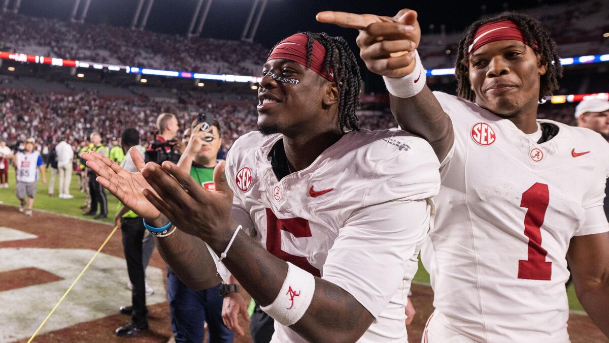 25 октября 2025 года №4 Алабама Кримсон Тайд одержала волевую победу над Саут Каролиной Геймкокс со счетом 29-22 в матче SEC на стадионе Уильямс-Брайс в Колумбии. Алабама, отстававшая большую часть игры, переломила ход в финальные минуты благодаря двум тачдаунам ресивера Германа Бернарда. Первый — 9-ярдовый пас от квотербека Джалена Милро в 2:26 до конца, второй — 35-ярдовый в 1:52, закрепивший успех. Это позволило Алабаме сохранить шансы на плей-офф и улучшить рекорд до 7-1. Матч был полон драматизма: Саут Каролина вела 22-15 в четвертой четверти, но Алабама набрала 14 безответных очков. Милро завершил игру с 243 ярдами пасом, 1 TD и 1 INT, плюс 50 ярдами рашем. Бернард стал героем, поймав 6 пасов на 108 ярдов и 2 TD. Тренер Алабамы Кален ДеБур отметил: "Это была проверка характера — ребята не сломались под давлением". Саут Каролина (4-4) подвели ошибки: два фамбла и слабый ран-гейм (всего 89 ярдов). Игра собрала 78 281 зрителя — аншлаг, фанаты Геймкокс в розовых шарфах (Pink Out для