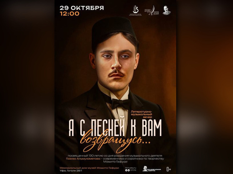 В Башкирии 29 октября отпразднуют 130-летие легендарного композитора и певца Газиза Альмухаметова в стенах мемориального дома-музея Мажита Гафури. Газиз Альмухаметов являлся одной из ключевых фигур музыки и искусства Башкортостана. Также он воспитал целую плеяду знаменитых артистов, прославив национальную музыкальную школу. Композитор был частым гостем дома Мажита Гафури. Вместе таланты работали над созданием оперы «Труженик» по одноименной поэме писателя. Вечер пройдет в уютной атмосфере под звучание пианино ДИДЕРИХСЪ. Инструмент является подарком Народного комиссариата просвещения БАССР к 20-летию литературной деятельности Мажита Гафури. За инструментом сидел сам Газиза Альмухаметов, а также Султан Габяши, Салиха Сайдашева и Загидулла Яруллин и другие деятели искусства. Гости вечера увидят выступления знаменитых артистов и подробнее познакомятся с биографией артиста.