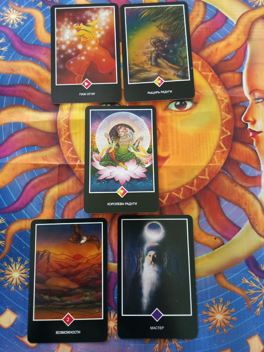 Карты указывают на очень позитивный и благоприятный период в вашей жизни. Судьба готовит для вас новые начинания, вдохновение, возможности и успех. Будьте открыты для всего нового, доверяйте своей интуиции, не бойтесь следовать своим мечтам, и у вас обязательно всё получится. Помните, Судьбе всегда можно помочь, своими действиями и решениями.