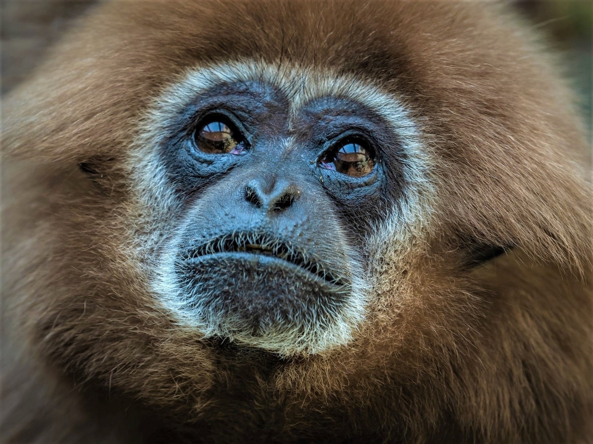 А теперь познакомимся поближе с одним из самых очаровательных представителей семейства — белоруким гиббоном (Hylobates lar). Своё название он получил совершенно заслуженно: у него действительно белые или светло-кремовые руки и ноги, словно он надел элегантные перчатки и носочки. Белое кольцо вокруг темного лица делает его похожим на панду, решившую стать обезьяной.