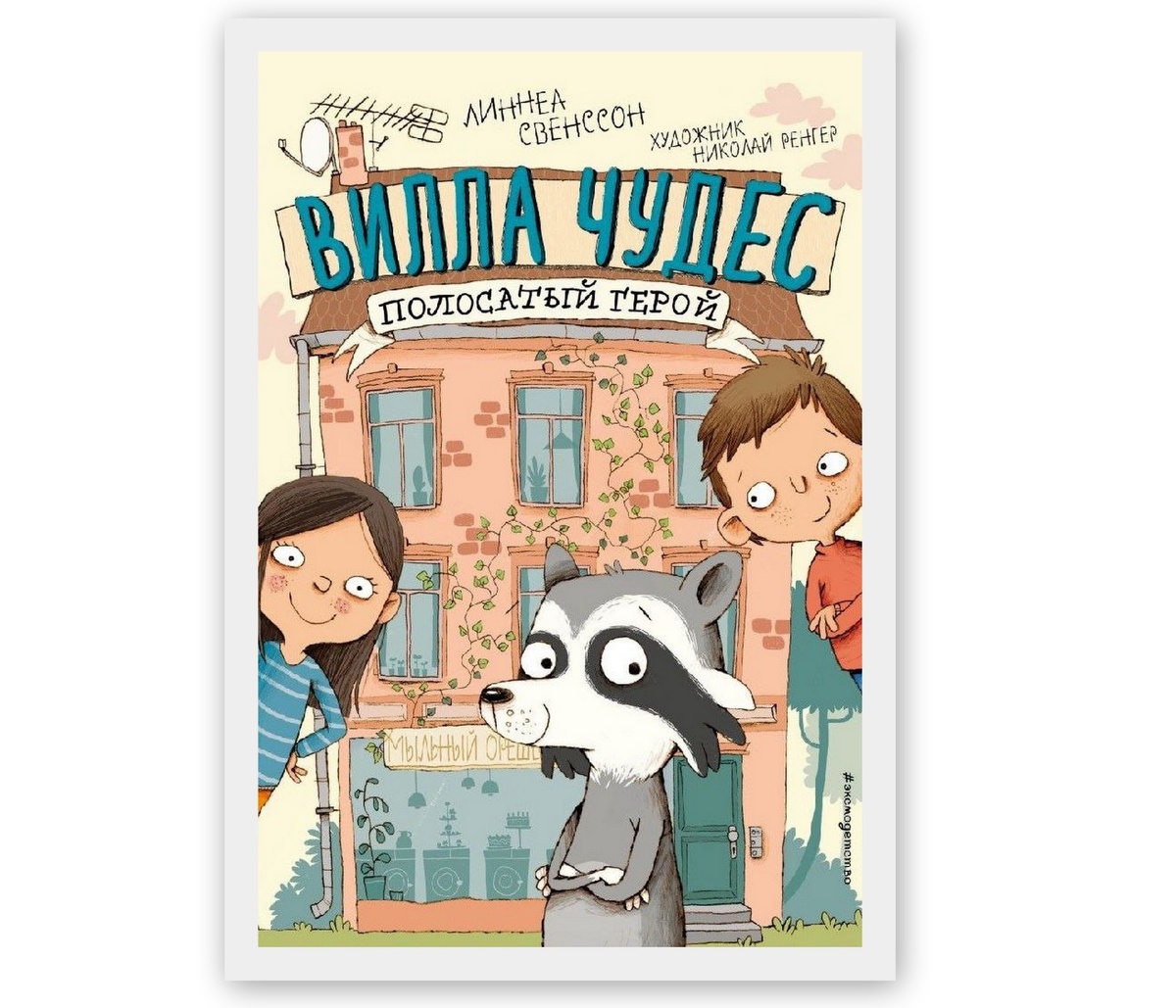 Удивительное дело. Когда я на полках искала, что бы нам почитать такого... легкого и не напрягающего, нашла "Полосатого героя". Удивилась, потому что мы совершенно точно читали с Машкой эту книгу года три назад, и у меня даже были смутные воспоминания, что и свои впечатления я о ней где-то писала, но не нашла никаких упоминаний ни в собственных записях, ни в голове. За эти три года я полностью обнулилась. Я помнила, что в первый раз мы неплохо провели время – уже хорошо. Ещё помнила, в общих чертах, что, эта история – ситком в антураже кофейни-прачечной с участием енотика. Случайно обнаружила, что у истории есть пара продолжений, поэтому мы решили перечитать, прежде чем приступать к новым сезонам сериала. Ну, "штош" (с) ... Книга состоит из историй без начала и конца. Первая начинается с того, что енот уже находится в доме детей младшешкольного возраста Матильды и Йоши (они - двоюродные брат с сестрой, дом у них - семейное гнездо и несколько семей живут вместе, включая старших родстве