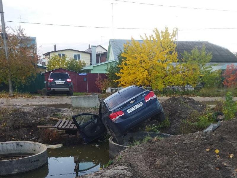 В редакцию «Блокнот Воронеж» обратились очевидцы с фотографиями и видео необычного происшествия, случившегося в одном из частных секторов города. На кадрах видно, как легковой автомобиль наполовину погрузился в котлован, частично заполненный водой. По словам местных жителей, инцидент произошёл в районе Ваи. Женщина, снявшая видео, комментирует: - Это у нас в нашем котловане валяется машина. Автор снимков сопроводила их подписью: - Опять частный сектор на Ваях. Упала машина. На фотографиях видно, что автомобиль съехал с узкого проезда и оказался в яме рядом с бетонными кольцами, предположительно относящимися к дренажной или водопроводной системе. Машина накренилась на бок, частично опустившись в воду. Судя по кадрам, в момент происшествия вблизи никого не было, однако водитель, вероятно, успел покинуть салон — двери автомобиля открыты, а подушки безопасности раскрыты. Официальных комментариев от ГИБДД или городских служб пока не поступало. Неизвестно, получил ли кто-либо травмы и что ст