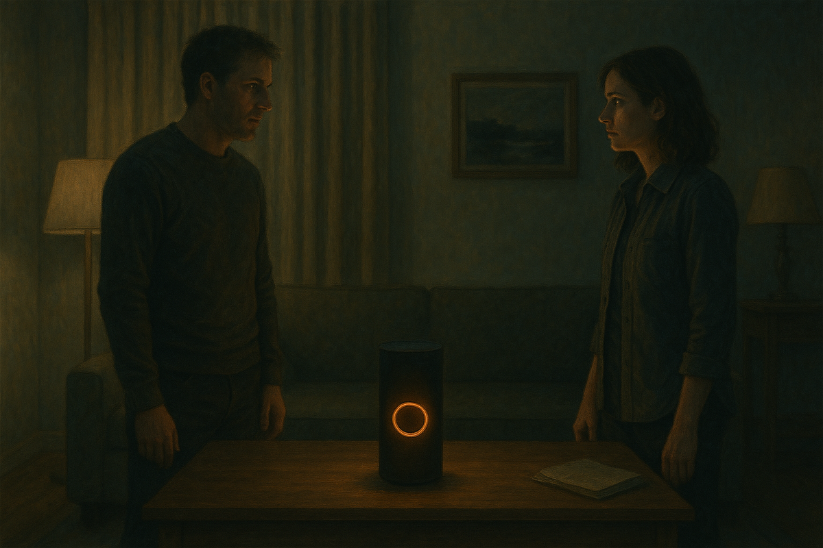 Я долго относился к колонке как к игрушке. Говоришь “включи свет” — включает, “поставь музыку” — ставит. Всё просто. Пока однажды она не вмешалась в разговор. Мы с женой спорили, кто забыл выключить обогреватель, и колонка вдруг сказала: “Питание розетки было отключено в 21:04.”