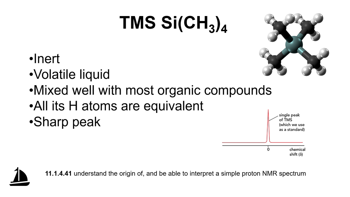- Тетраметилсилан инертен, соответственно не будет реагировать с исследуемым веществом.