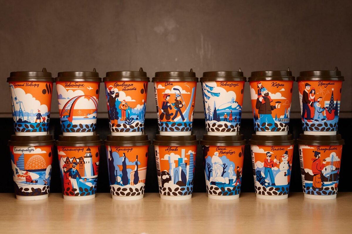 Смотрите, во «Вкусно — и точка» появились коллекционные стаканы с зимними пейзажами городов России ❤️ Все иллюстрации созданы художником и иллюстратором Севой Выводцевым (Seva MFN), который в своих работах исследует городскую архитектуру и повседневность. Дизайны посвящены Москве, Санкт-Петербургу, Нижнему Новгороду, Казани, Новосибирску, Владивостоку, Иркутску, Нальчику, Калининграду, Екатеринбургу, Новокузнецку, Краснодару, Сочи и Орловской области. Стаканы распределены по стране без географической привязки, поэтому в любом городе можно купить напиток в стакане с представленными в коллекции дизайнами. Смотри, как прикольно (Регина Ахметова) — ежедневно публикую рекламные кейсы