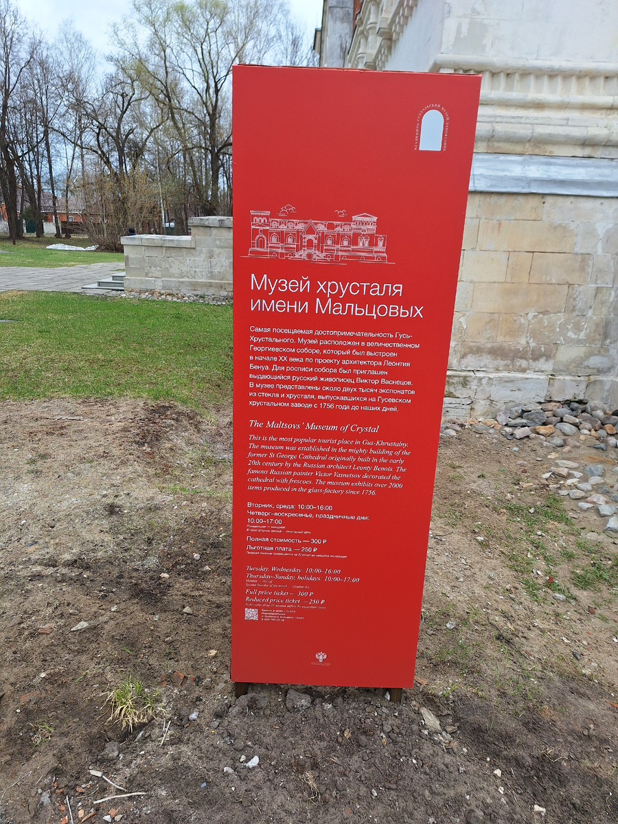 Добрый вечер! Одна из апрельских поездок прошлого года была поездка в два города Гусь-Хрустальный, Муром. Первым делом мы посетили музей хрусталя имени Мальцовых, на мой взгляд интересное здание, мне оно больше понравилось чем сам хрусталь, есть интересные экземпляры хрусталя, но здание выглядит лучше. Возможно была обзорная экскурсия по городу Гусь-Хрустальный, не помню.