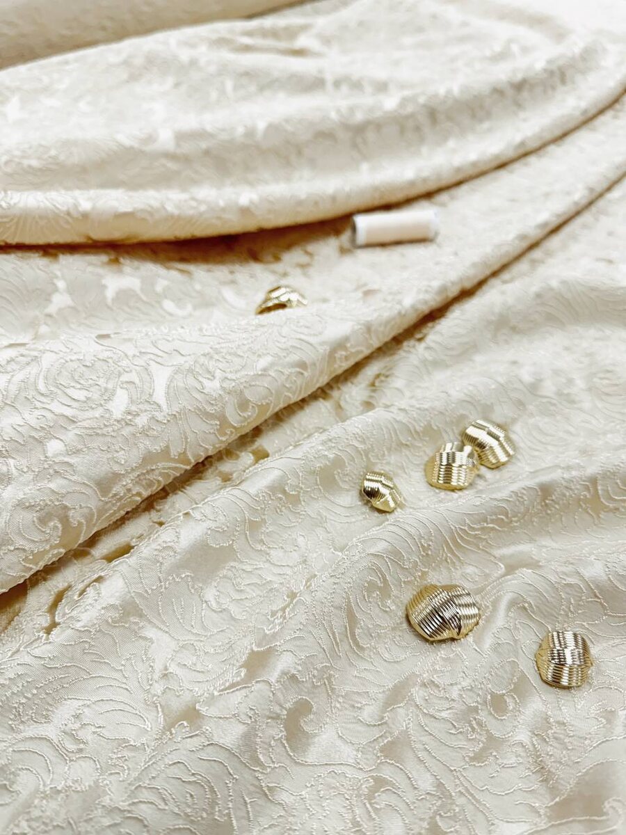 Нежный сливочный жаккард с вензелями. Кордовый узор. Идеально подойдёт для пошива жакета, юбки, платья, корсета и т.д. Хорошо тянется! Ширина: 1м 40см Производство: Италия. Стоимость 5980₽ На первый заказ мы дарим Вам скидку 10% Для заказа пишите пожалуйста нам в телеграмм с волшебной фразой «Пришла из Дзен» Ссылка на наш телеграмм канал: Ждём Вас ежедневно, с 10:00 до 20:00, по адресу: г.Москва, ул Мневники, д.6, п.6