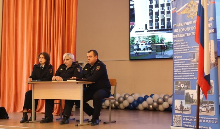 Сотрудники регионального главка МВД рассказали учащимся технологического колледжа о службе в органах внутренних дел. В Волгоградском технологическом колледже состоялась профильная встреча учащихся с представителями правоохранительных органов. Мероприятие прошло при участии специалистов Главного управления МВД России по Волгоградской области и городского Управления МВД. По данным ГУ МВД по Волгоградской области, перед студентами выступила заместитель начальника отдела кадров подполковник полиции Татьяна Старостина, которая подробно рассказала о специфике работы в полиции и порядке отбора кандидатов на службу. Начальник отдела организации дознания полковник полиции Юлия Потлова ознакомила аудиторию со структурой и основными направлениями деятельности дознавателей. В рамках всероссийской акции «Школа информационной безопасности» заместитель начальника отдела по работе с личным составом подполковник полиции Максим Скороходов проинформировал студентов о распространенных мошеннических схемах