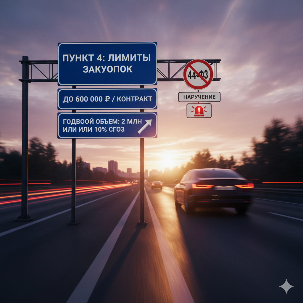 Закупки у единственного поставщика по пунктам 4 и 5 части 1 статьи 93 Федерального закона № 44-ФЗ — это наш "скоростной режим" в закупочной системе. Это механизм для оперативного закрытия мелких нужд. Но как и на трассе, превышение скорости (лимитов) ведет к очень неприятным последствиям.