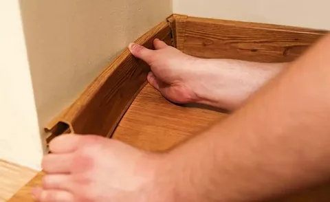 6. Защелкните плинтус на клипсы, начиная с угла. Действуйте без сильных ударов, но с уверенным нажатием.
