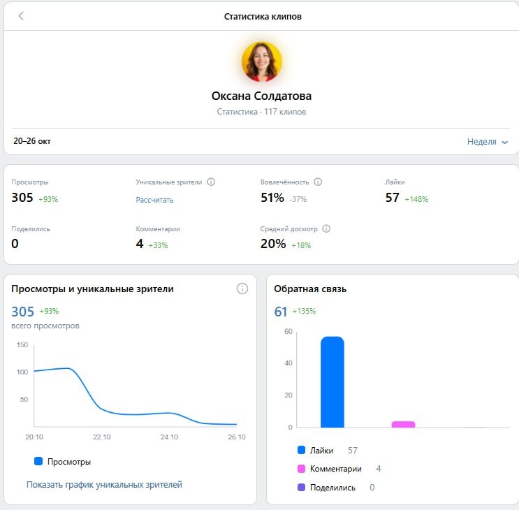 С другой стороны, часть соцсетей нулевые, а значит алгоритмы только начинают "знакомиться" с контентом. В Дзене пошли просмотры и лайки, что меня приятно удивило. И вообще, это ведь только начало, только первые 7 роликов из 100. Через неделю подключу автоматизацию и часть соцсетей будут работать на автомате.