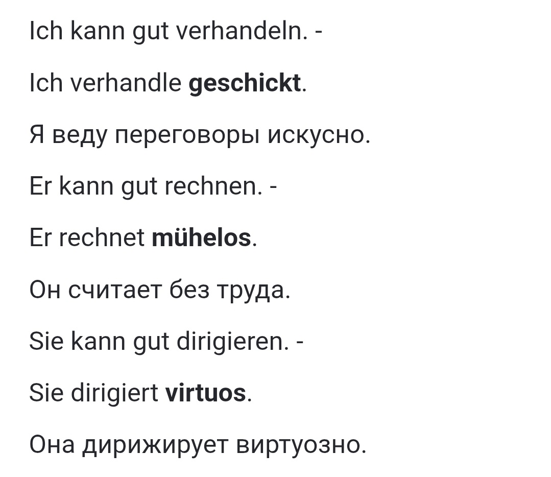 Глагол können (мочь, уметь) является одним из фундаментальных в немецком языке. Однако, познакомившись с ним еще в самом начале пути, на А1, многие ученики так и застревают на "ich kann", "ich kann", "ich kann". При этом на высоких уровнях для придания речи стилистической окраски, большей точности и разнообразия, а тем более на экзаменах, стоит заменять его более сложными и/или контекстно-зависимыми конструкциями. Здесь обзор синонимов и синонимичных структур для können (в значениях "способность", "возможность", "разрешение". ▎1. Выражение способности или мастерства Вместо прямого использования können (Ich kann gut Deutsch sprechen), можно использовать более формальные или акцентирующие навыки конструкции. ▎A. Использование imstande sein (быть в состоянии) Эта конструкция более формальна и часто используется в письменной речи или при обсуждении сложных задач. Она подчеркивает наличие необходимых ресурсов или условий для выполнения действия. • Структура: sein imstande, etwas zu tun Sie