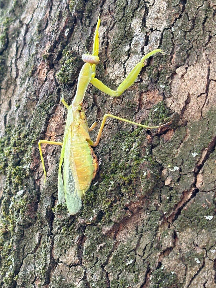 Это был богомол! Никогда раньше я не встречал таких существ. Он сидел на ветке и смотрел на меня своими большими глазами. Я осторожно подошёл поближе, стараясь не напугать нового знакомого.