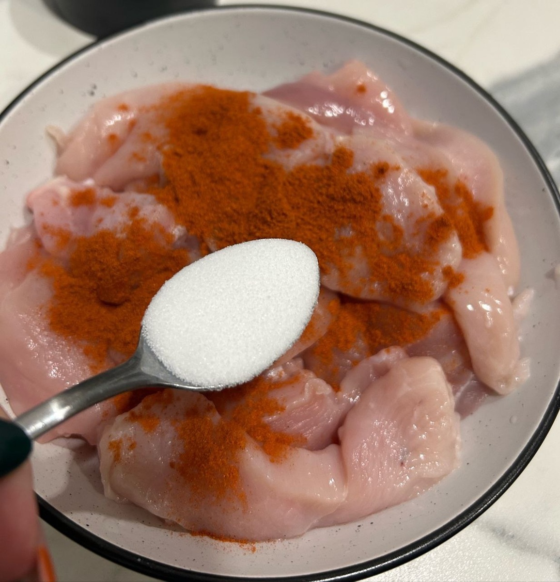 Углеводы: 16 г Реклама: БЕСПЛАТНО - Вебинар «Профессия Нутрициолог» Жми: https://lk.getfit.su/link/68s92ftlx?erid=HuNbC4MfXDoRoHHYXRHF3GSEvtG26G1WZokvxANNhvj3GbLV6k АНО «Центр нутрициологии и фитнеса» ИНН: 6219008570 Тщательно промойте куриное филе под проточной водой и обсушите бумажными полотенцами. Нарежьте поперек мышечных волокон на порционные кусочки размером 3×4 см. Калибро