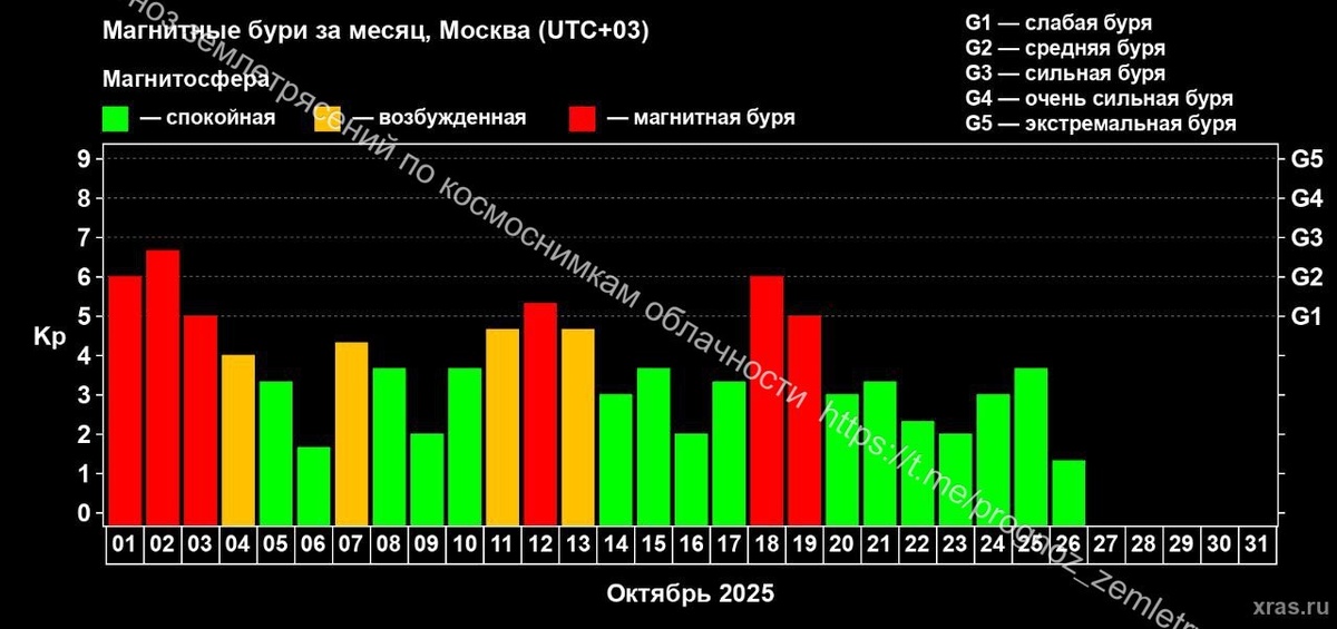 Магнитные бури 18-19 октября оказались сейсмоэффективными и серьезно сказались на траектории полюса вращения Земли, вызвав петлевое отклонение. В этом году аналогичные петли в трехнедельном окне последствий уже устроили М7.7 в Мьянме, М7.4 на Камчатке + М7.3 на Аляске + М8.8 на Камчатке. Так что в течение 2.5 недель можем получить еще одно или несколько сильных землетрясений (М7-8) на глобальном уровне. ===== The magnetic storms of October 18-19 proved to be seismically effective and seriously affected the trajectory of the Earth's rotation pole, causing a loop deviation. This year, M7.7 in Myanmar, M7.4 in Kamchatka + M7.3 in Alaska + M8.8 in Kamchatka have already arranged similar loops in the three-week window of consequences. So within 2.5 weeks, we may get one or more strong earthquakes (M7-8) on a global level.