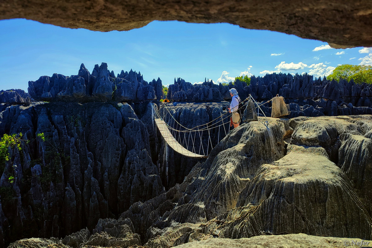 Знаменитый каменный лес Цинги! Многие о нем знают, но мало кто туда добирался. Цинги де Бемараха - это скалы, каньоны, пещеры, узкие галереи лабиринтов и подвесной мост над пропастью. Виды фантастические. Однако, физические трудности усугубляет адская жара и палящее солнце. Это было прямо испытание. Но оно стоило того.