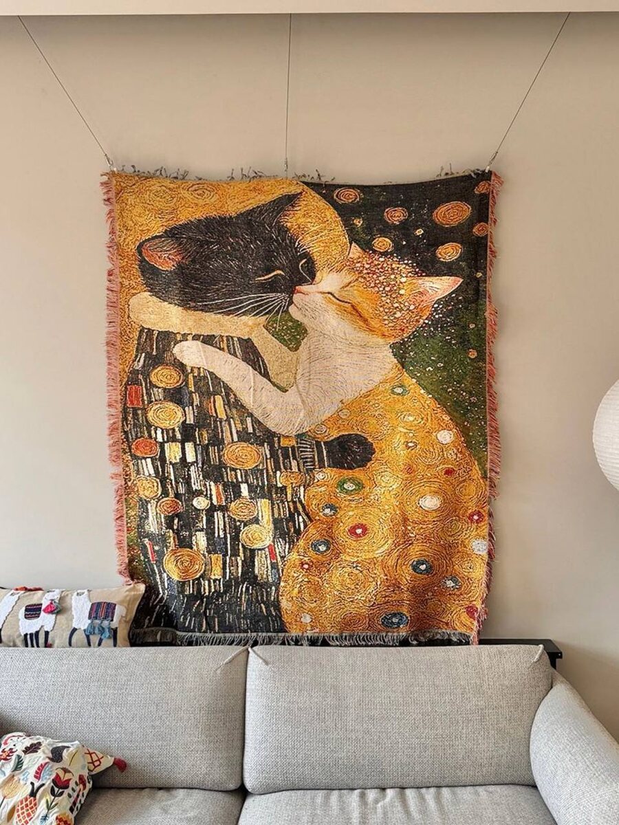 🤍 Подборка для всех, кто вдруг захотел “вернуться к истокам” и повесить все-таки ковер на стену 😁 Нашли для вас вот такие пледы-гобелены: их, конечно, можно не только вешать на стену, но и использовать как обычный плед, особенно для детской комнаты) 1. Домик в лесу 2. Животные 3. Коровки 4. Климт “котики” 5. Пейзаж 6. Ферма 7. Собачки 8. Тигры 9. Гарри Поттер ❤️ — если понравилось