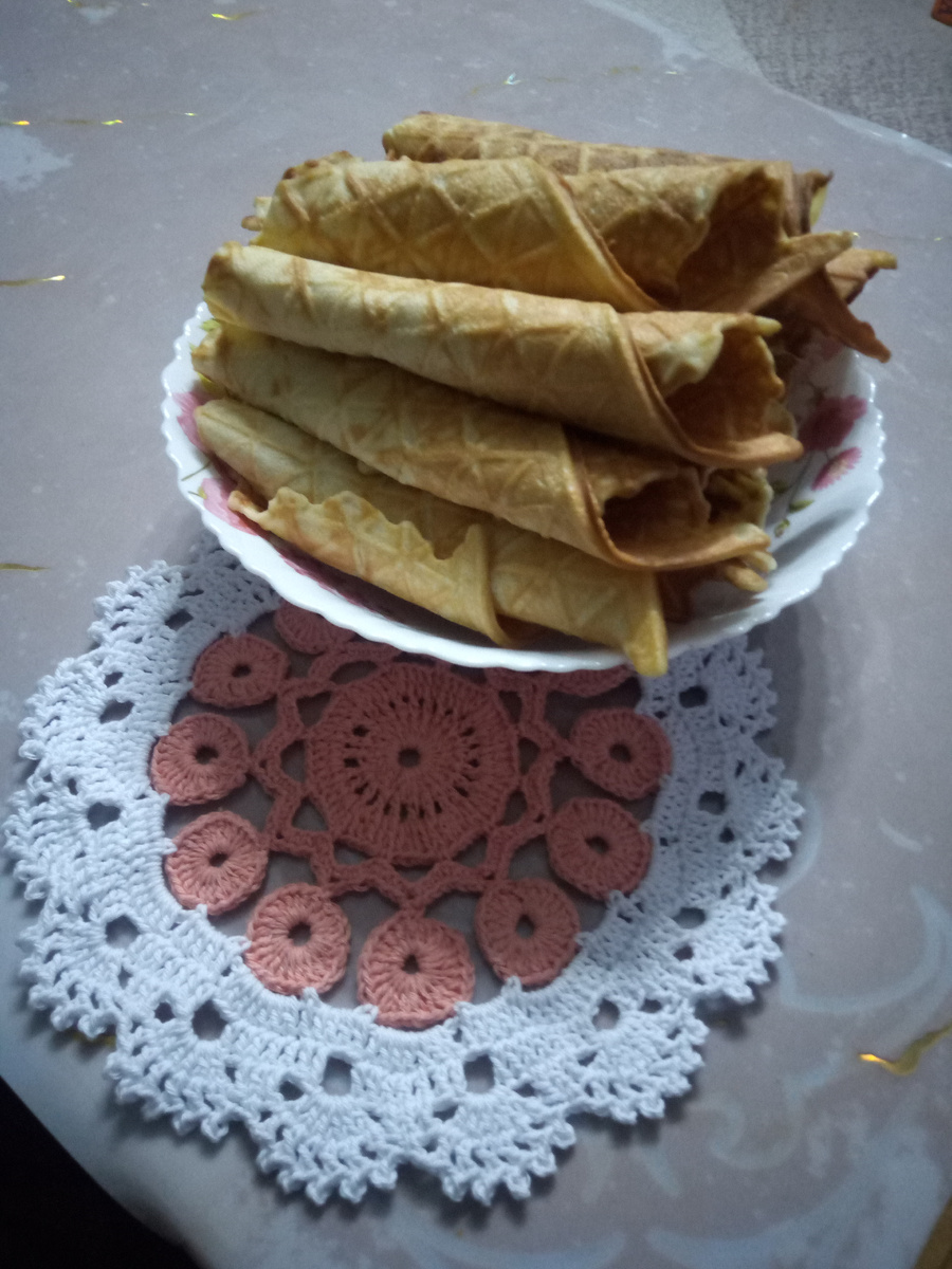 Здравствуйте . Спешу поделиться с вами самым лучшим рецептом домашних вафель . Вкуснятина из моего с братом детства 😉. Любимый рецепт моей мамы , а теперь конечно же и мой . Так как готовлю их своим деткам 🥰 с большим удовольствием . Сливочное масло - 200 грамм Муку - 1 стакан Сахар - 1 стакан Яйцо - 6 штук Ванилин на кончике ножа ( если добавить больше , то в тесте будет неприятная горчинка ). Соль - одну щепотку Растопите сливочное масло и немного дайте ему остыть. Яйца взбейте в глубокой ёмкости до средней пышности . Добавьте в яичную смесь сахар , ванилин , соль и хорошо перемешать . Теперь можно добавить растопленное , слегка под остывшее сливочное масло , перемешиваем . Муку добавляем частями , одновременно перемешивая . Тесто должно быть средним по густоте и однородным , без комочков. Выпекаем наши вафельки на предварительно разогретой вафельницы. Потребуется 2-3 столовые ложки теста на одну вафлю. Как только вафелка запеклась до золотистого цвета , её можно снимать и