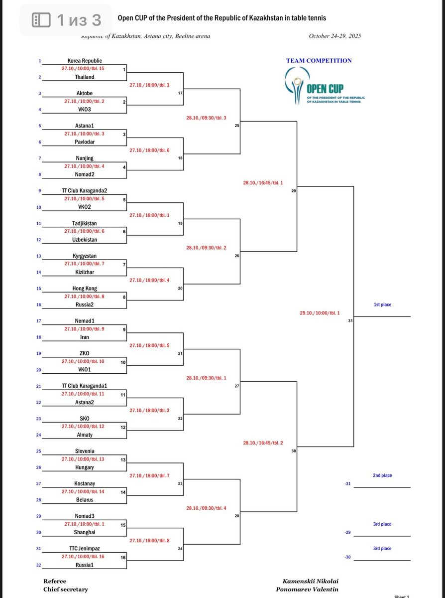 😃😃😃 Жеребьевка смешанного командного и одиночного взрослого турнира на открытом Кубке Президента Республики Казахстан