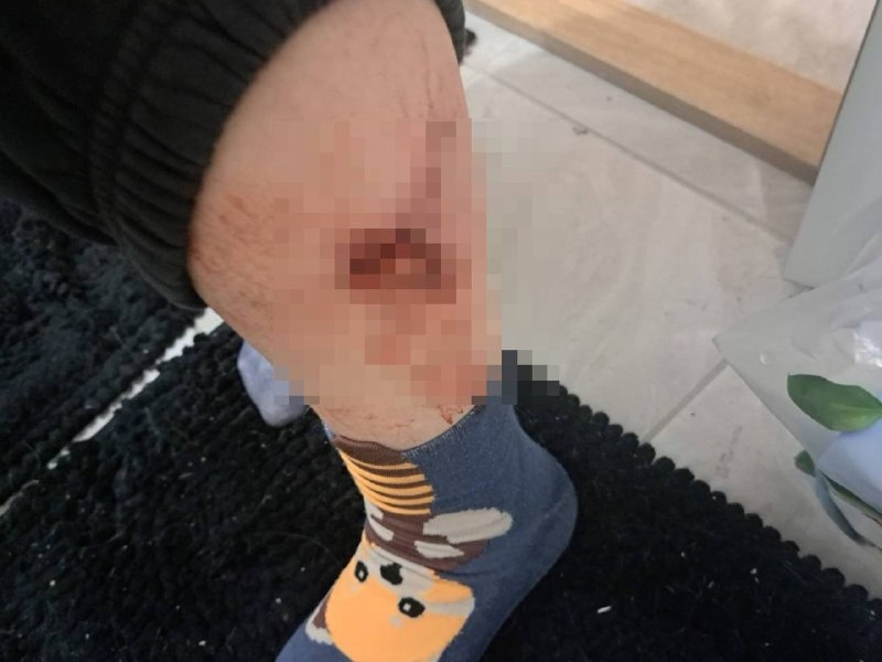 Крупная белая собака с темными пятнами внезапно выбежала из кустов и укусила её за ногу.
