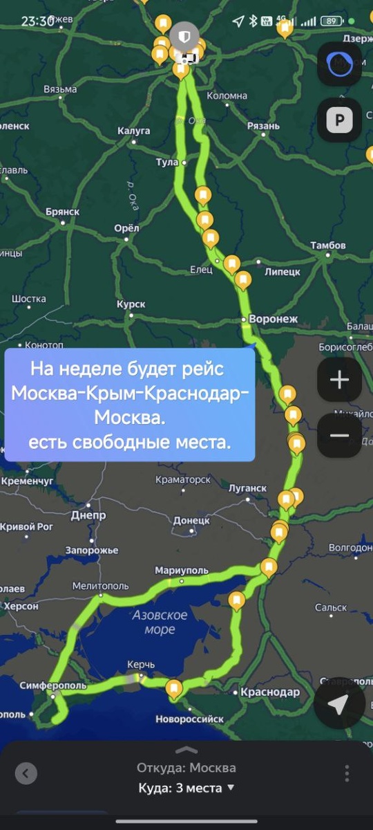В четверг 30.10 из Крыма через краснодарский край на Москву. Есть много места и одно место на лафете.
