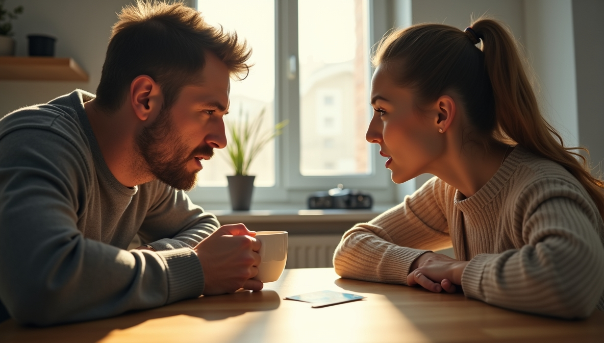 Жена присела напротив, сложив руки на столе. Лицо ее было непривычно строгим.