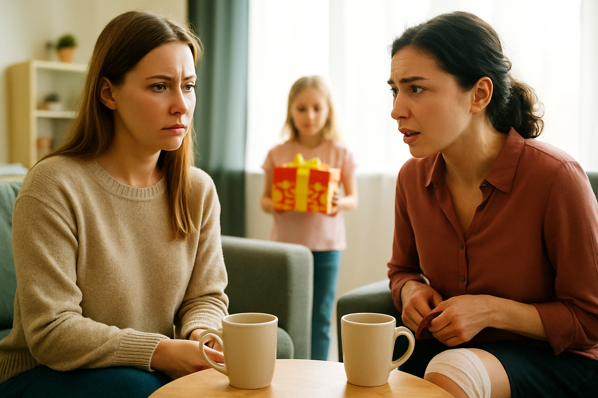 — Да, солнышко, — Елена постаралась улыбнуться. — Тётя Наташа не смогла приехать сегодня, она... немного приболела. Но она обязательно приедет завтра с подарком.