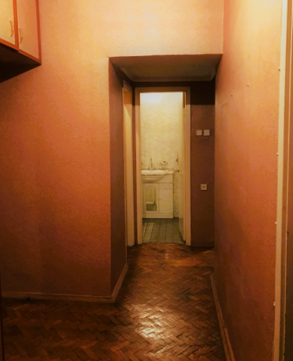 Прихожая, как первый контакт с домом, была полностью преобразована под идею "путешествия". Старая отделка – потрёпанный паркет и устаревшие обои – уступила место свежему ремонту: стены окрасили в светло-серые тона, а пол постелили ламинатом в натуральных деревянных оттенках, устойчивым к износу. В грязной зоне уложена изящная узорчатая плитка.