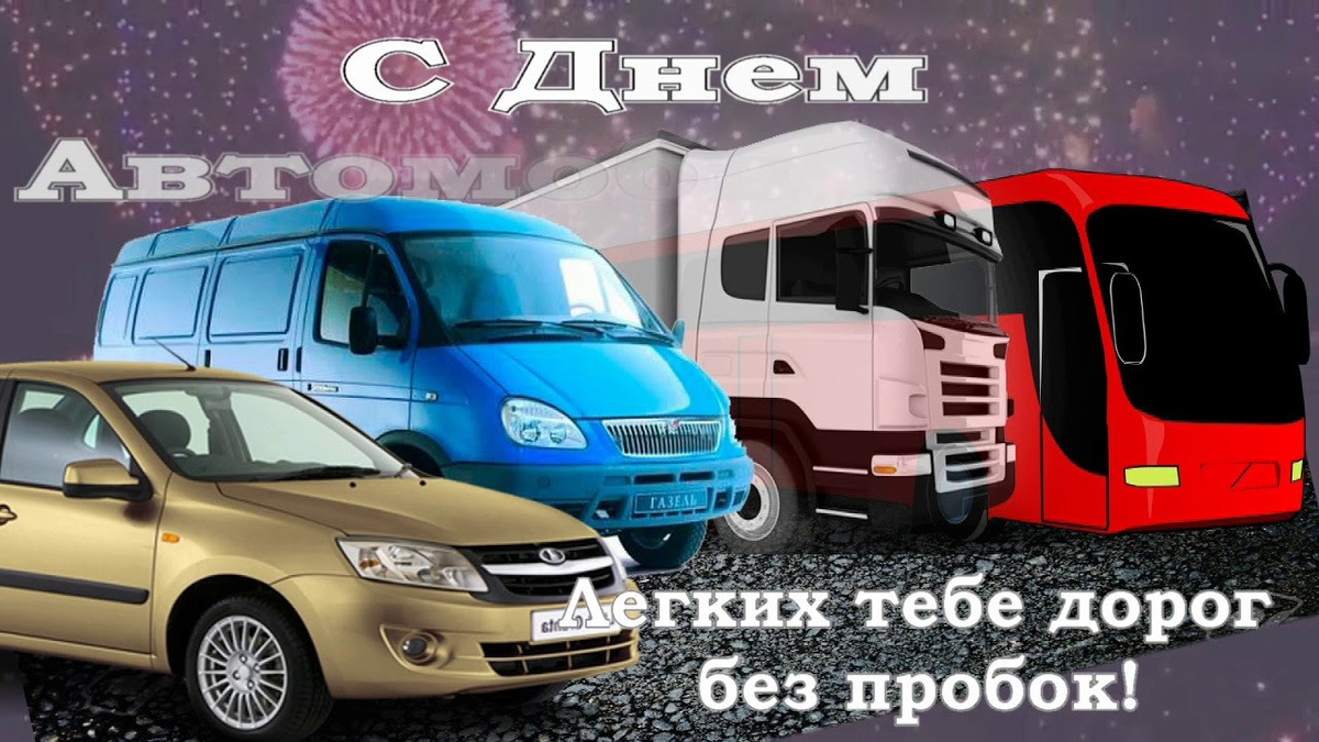 Поздравляю с Днем автомобилиста. Пусть ваша дорога будет гладкой и ровной, а на пути пусть всегда горит зеленый. Пусть погода в душе будет всегда солнечной. Пусть дома всегда ждут и встречают с любовью. Желаю, чтобы никогда не было желания остановиться, но тормоза работали всегда. А еще здоровья, благосостояния, внимания и простого человеческого счастья. Чтоб колодки не скрипели, Фары в темноте горели, Чтоб бензин не дорожал, И домкрат без дел лежал! Чтоб дороги без баранов, И мотор ревел исправно, Чтоб сотрудник ДПС С курса вашего исчез! © Поздравок