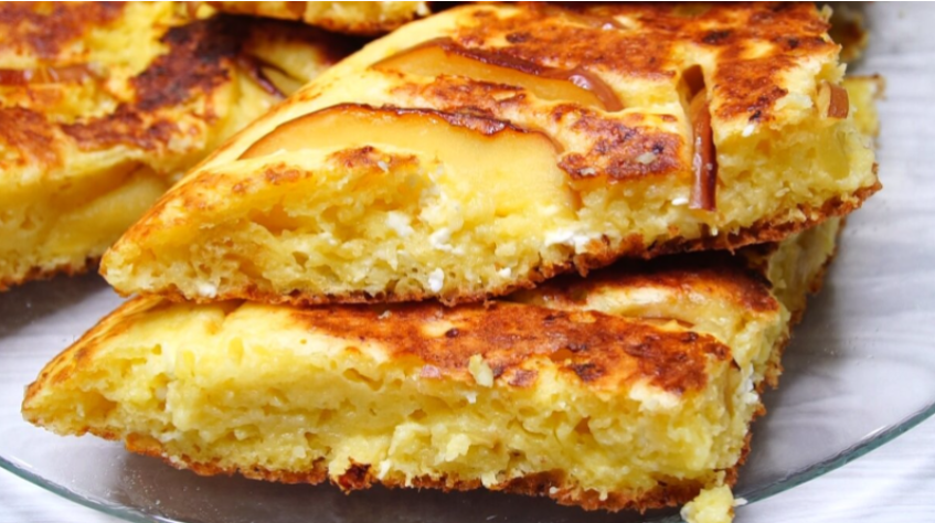 Закрываем крышкой и жарим еще 10 минут. Теперь снимаем со сковороды. Сразу разрезаем на порционные кусочки и подаем к столу со сметаной с пылу с жару. С горячим чаем или кофе. Очень вкусно и просто. Приятного аппетита! Видео версию смотрите ниже👇