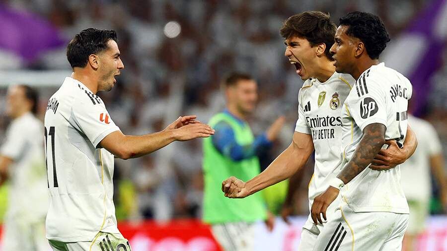 Мадридский футбольный клуб (ФК) «Реал» обыграл «Барселону» со счетом 2:1 в матче 10-го тура Ла Лиги. Встреча состоялась 26 октября на стадионе «Сантьяго Бернабеу». Отмечается, что в составе победившей команды забитыми мячами отличились нападающий Килиан Мбаппе (22-я минута) и полузащитник Джуд Беллингем (43-я). Единственный мяч за «Барселону» забил нападающий Фермин Лопес (38-я). «Реал» набрал 27 очков и лидирует в турнирной таблице чемпионата Испании, «Барселона» с 22 очками идет на второй строчке, добавляет «Спорт-Экспресс». Ранее, 22 октября, «Реал Мадрид» победил со счетом 1:0 туринский «Ювентус» в матче третьего тура общего этапа Лиги чемпионов (ЛЧ) УЕФА. Единственный гол в матче на 57-й минуте забил английский полузащитник 22-летний Джуд Беллингем, который выступает за «Реал» в рамках шестилетнего контракта, заключенного в июне 2023 года. Все важные новости — в канале «Известия» в мессенджере МАХ