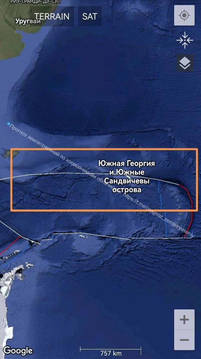 По плите Скоша (Фолклендские острова, Южная Георгия, Южные Сандвичевы острова) есть вероятность землетрясения до М7.8+/-0.2 в течение 10 дней. ===== Near the Skosha plate (Falkland Islands, South Georgia, South Sandwich Islands) there is a probability of an earthquake of up to M7.8+/-0.2 within 10 days.