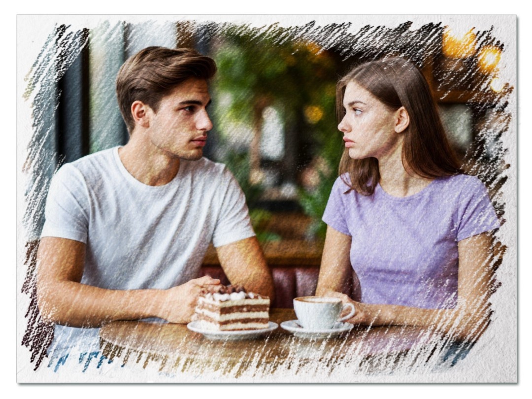 Полина вошла в кафе и сразу же увидела Егора, сидящего за столиком у самого окна. Он помахал ей, и девушка быстрым шагом направилась к нему.