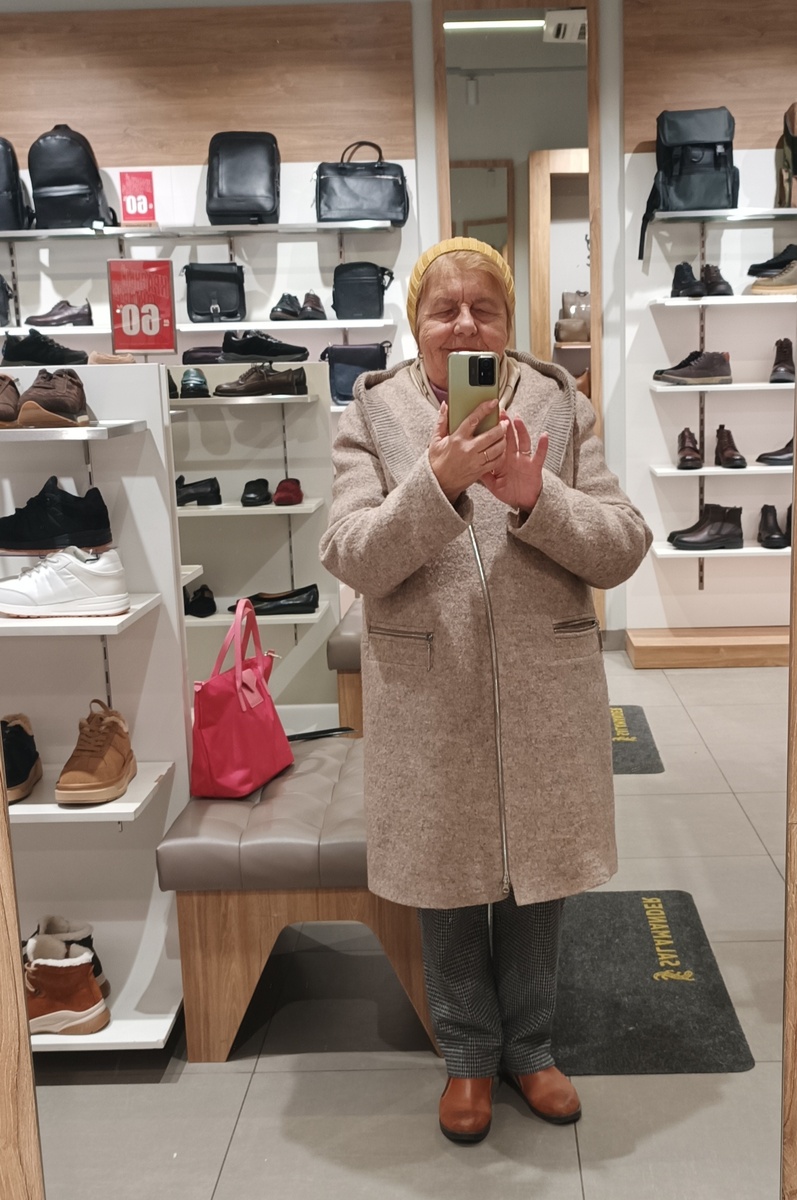 27 октября 2025 года Здравствуйте, друзья! Погода в это воскресенье к прогулкам не располагала. Было довольно тепло, но дождь принимался с завидной регулярностью. Хорошо, что появились торговые центры, где можно и "на людей посмотреть, и себя показать". Да ещё и народу там сейчас по минимуму, основная масса покупателей предпочитают делать покупки, не вставая с дивана. У меня диван старенький и не очень удобный, так что я по старинке люблю пройтись по "живым" магазинам. Но просто так ходить и разглядывать витрины я не очень люблю, а никаких запросов на то, чтобы что-нибудь купить, в себе не ощущала. Значит будем действовать по обстановке. В ТЦ "Киргизия" я обычно обувь покупаю, там несколько отделов есть, где мне часто попадается что-то подходящее, значит можно посмотреть, что там сейчас продают, на будущее. Хотя какое будущее, ассортимент меняется быстро. Не успеешь оглянуться, уже осенние товары сменяются сугубо зимними, а осенние уже продаются в остатках и со скидками. Но всё же заг