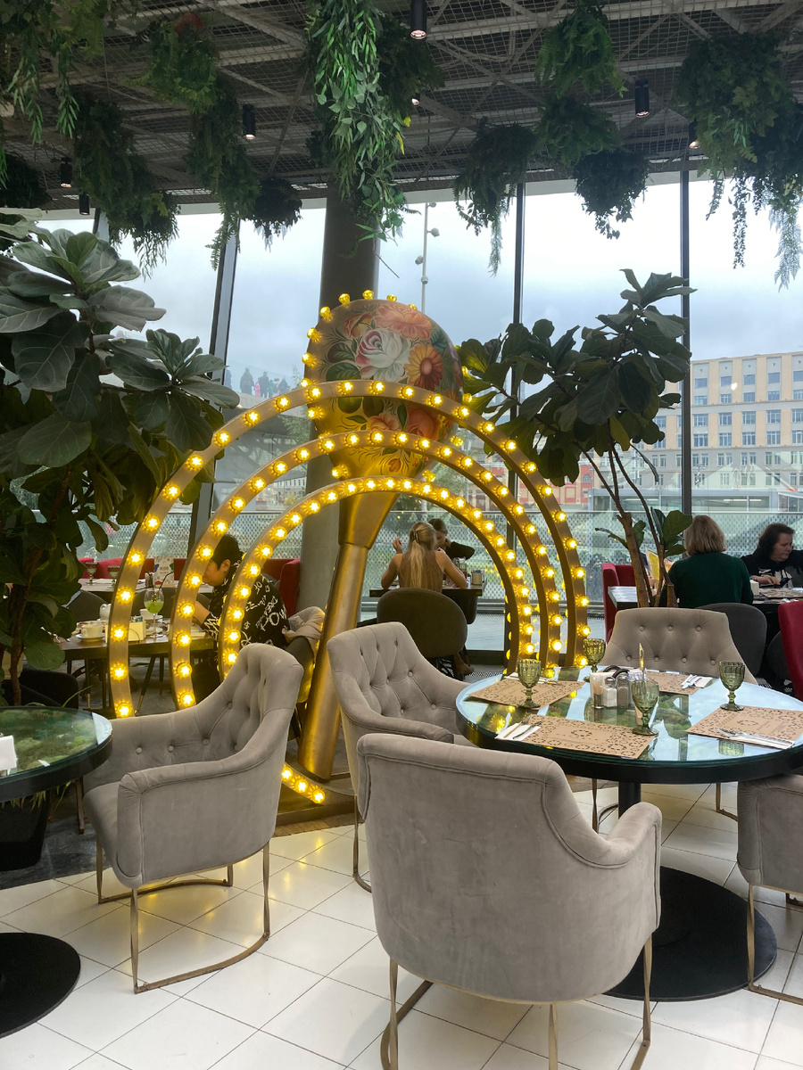 Ну тут, казалось бы, всё просто- понравилось или не понравилось? А если место необычное? У каждого формируется своё мнение на счет посещения гастрономического центра «Зарядье». Мы бронировали столик заранее по телефону и нас разместили за столиком у окна с прекрасным видом на набережную и стеклянный мост. Меню принесли сразу, но официанта мы ждали достаточно долго, даже немного пришлось помахать рукой, чтоб подошел. По стоимости сейчас все блюда по 600 и 800₽, когда только открывались всё было по 390₽. Хоть меню и небольшое, но в нём хороший выбор разнообразных блюд. Любой подберет для себя оптимальный вариант. Что касается размера порции - хорошие. Некоторые блюда даже гигантских размеров. Например, впечатлил размер рульки. Да и супы и салаты очень даже внушительных размеров. Из плюсов хотелось бы отметить - большое пространство, разнообразие блюд. Цена для центра нормальная, даже бюджетная. Так что это ресторан подходит в качестве варианта ответа на вопрос - где поесть в центре