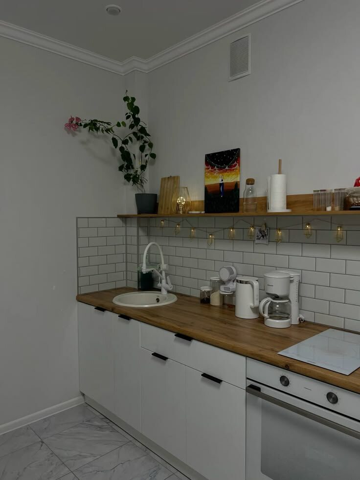 Как решить проблему: можно оставить одну открытую витрину для декора или красивой посуды, а остальные модули сделать в цвет стен — так они не будут утяжелять пространство. Как решить проблему: использовать тёплые оттенки белого (кокосовое молоко, айвори, песочный, сливочный) и добавить в интерьер текстуры (например, дерева), мягкий текстиль и акцентные элементы в более насыщенных оттенках. Как решить проблему: оставить 1–2 акцентные полки для декора, а для хранения использовать закрытые шкафы. Как решить проблему: рассмотреть варианты с поддоном или тщательно взвесить необходимость такого решения, учитывая особенности воды в вашем регионе. Как решить проблему: выбирать сантехнику белого цвета, матовых или хромированных оттенков — они более практичны. Как решить проблему: продумать комбинированное освещение с основными и дополнительными источниками света. Как решить проблему: выбирать мебель с продуманным покрытием или другими решениями, которые минимизируют видимость с