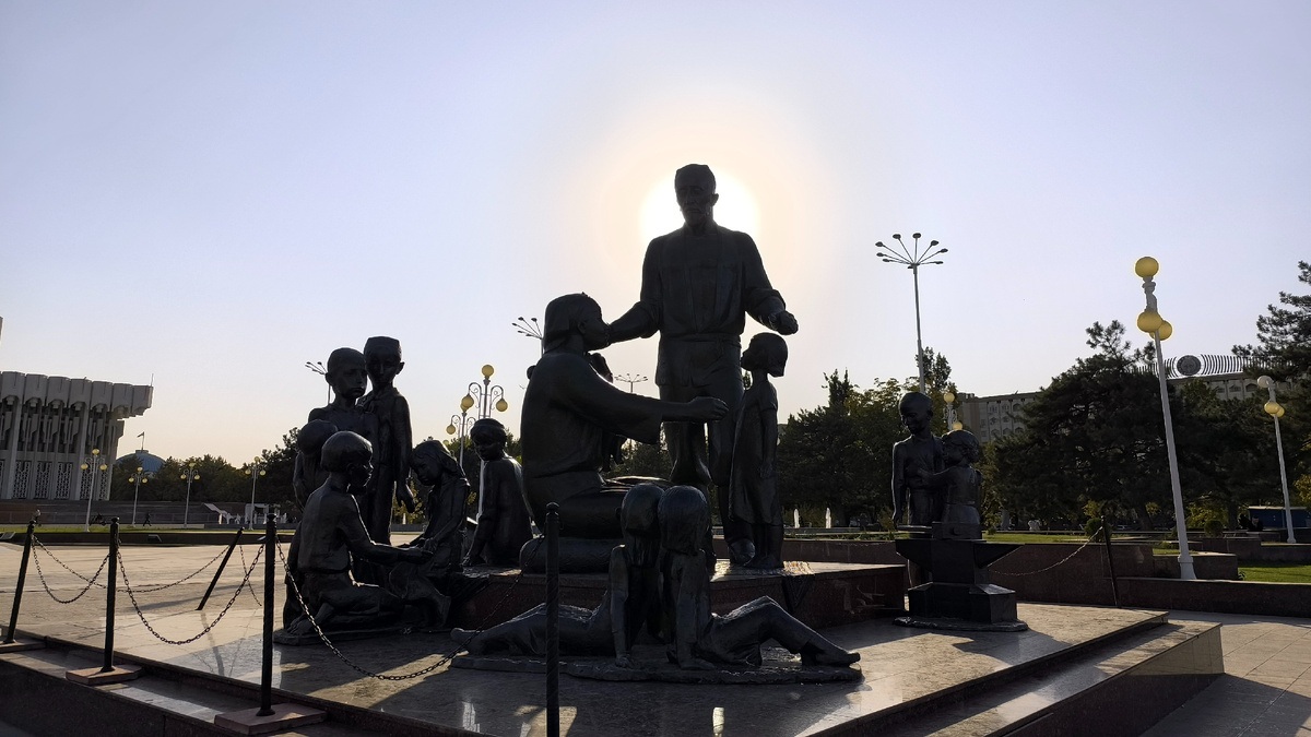 Почему интернациональная, если узбекская? И какой подвиг можно совершить так далеко в тылу? При чём здесь Дружба народов? И как бронзовые люди несколько раз меняли свою "прописку"? Этот памятник в центре столицы Узбекистана - необычный. Многофигурная композиция возвышается сейчас на Площади Дружбы народов, недалеко от одноимённой станции метро, но так было не всегда. Монумент посвящён дружной узбекской семье, но если присмотреться к лицам детей - они такие разные... странно... и интересно. Честно говоря, хоть я и читала когда-то об этом памятнике (была громкая история о его демонтаже и возвращении), но подзабыла про него. Поэтому встреча с ним оказалась неожиданной, почти случайной - в незнакомом нам городе мы просто искали ближайшую станцию метро и прикинули, что короче будет пройти через площадь. Боковым зрением я заметила бронзовые фигуры - и тут же щёлкнуло, вспомнилось. Конечно, мы подошли поклониться. История одновременно грустная и добрая. Война, 1941 год. Множество детей пот