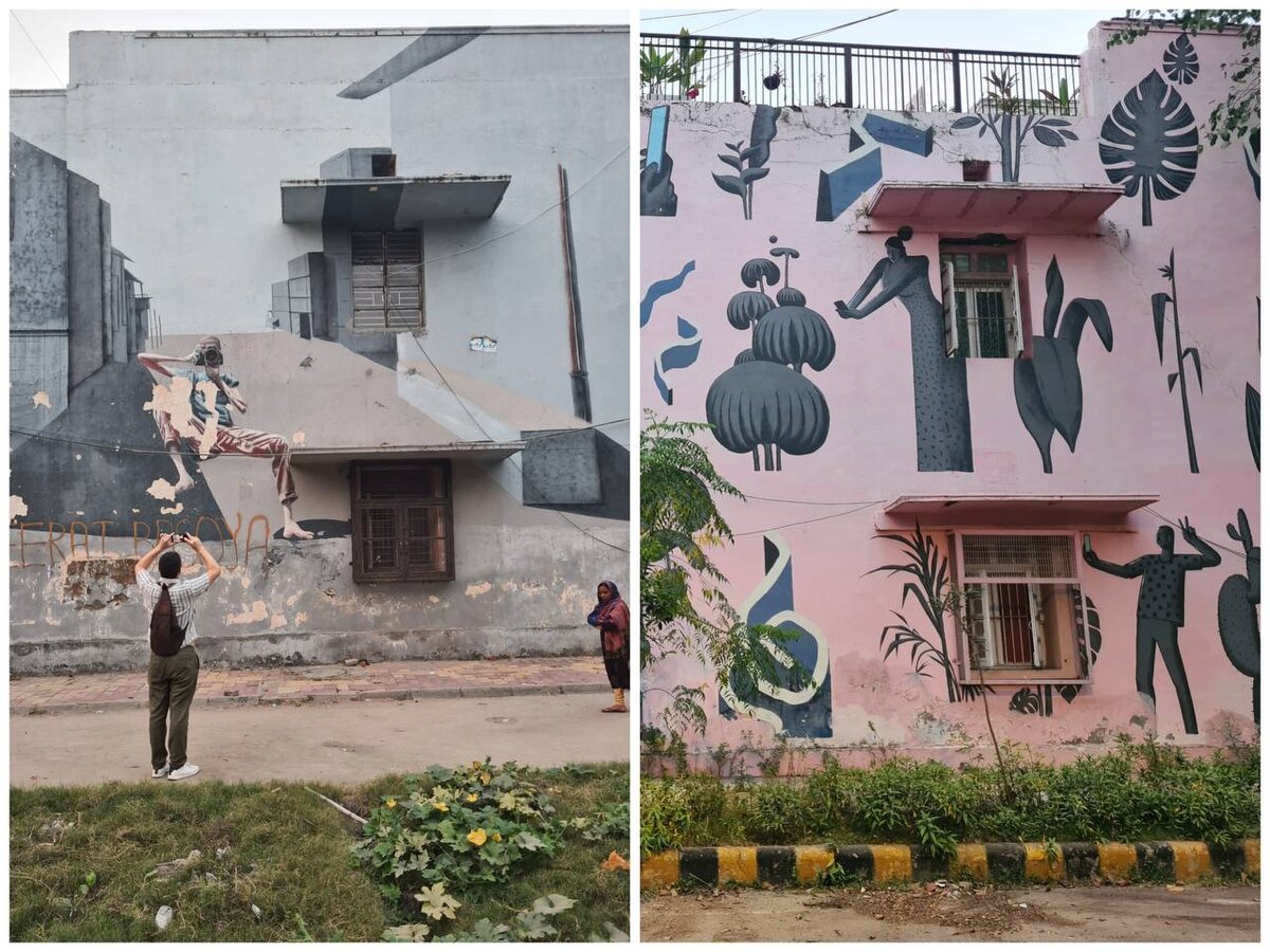 Мы слонялись по городу и забрели в удивительное место – художественный квартал Лоди. Увидели птицу во всю стену, потом слонов, а дальше не могли остановиться – бродили дотемна меж старых домов и одно за другим открывали полотна, превратившие индийский квартал в галерею уличного искусства. С первыми фонарями замелькала туристическая группа на велосипедах. Мы присоседились к ним и немного подслушали. Оказалось, что первые граффити появились на зданиях 10 лет назад. Из разных стран в город съехались амбициозные художники, которым выделили три переулка с типовыми двухэтажными жилыми домами. За это время на них нарисовали более 50 фресок на самые животрепещущие темы. Здесь и всемирное потепление, и неравенство женщин, и даже виртуальный мир на Марсе. А ещё каждый год в квартале Лоди проводят форум, на который съезжаются художники из 30 стран. Их главная цель – сделать индийские улицы ярче, если не архитектурно, то хотя бы красками и смыслом. Считается, что именно район Лоди в Дели подтолкну