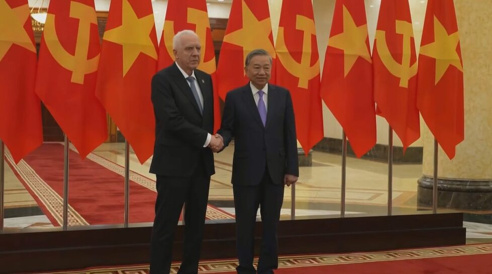 Генеральный прокурор России Александр Гуцан в Ханое в субботу принял участие в многосторонней встрече с генеральным секретарем Центрального комитета (ЦК) Коммунистической партии Вьетнама То Ламом и главами делегаций стран — подписантов Конвенции ООН против киберпреступности. На кадрах Гуцан и То Лам обмениваются рукопожатиями и фотографируются. Ранее генпрокурор РФ встретился с президентом республики Лыонгом Кыонгом и подписал от имени Москвы документ о сотрудничестве в борьбе с IT-преступлениями. 25 октября президент России Владимир Путин в опубликованном на сайте Кремля заявлении назвал подписание соглашения историческим событием, которое стало возможным благодаря объединению усилий стран — членов ООН, несмотря на «непростую международную обстановку». Инициатором выработки конвенции выступила РФ в 2019 году. Всего документ подписали уже 65 государств. ИСТОЧНИК: Пресс-служба Генеральной прокуратуры России