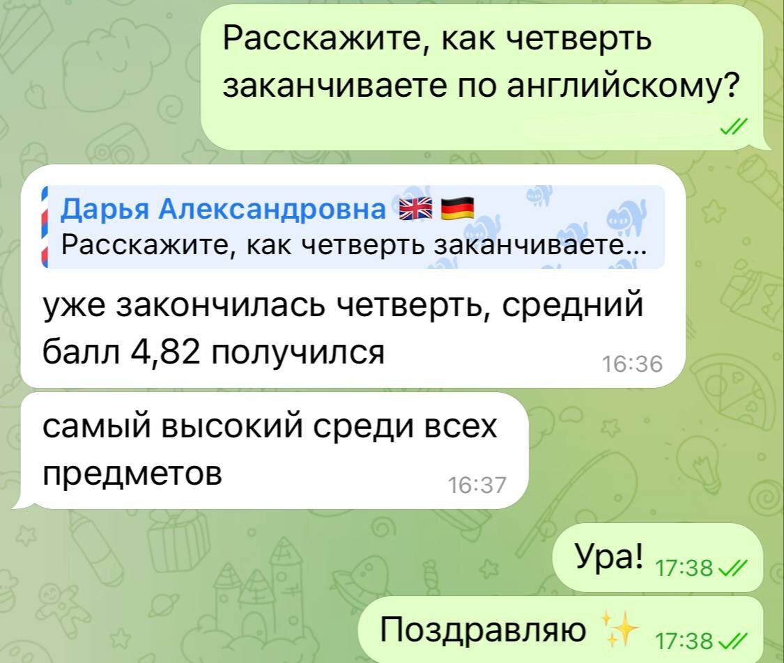 , Π½Π΅ Π΄ΡΠΌΠ°Ρ Π½Π°Π΄ ΠΊΠ°ΠΆΠ΄ΡΠΌ ΡΠ»ΠΎΠ²ΠΎΠΌ; π Π° Ρ ΠΊΠΎΠ³ΠΎ-ΡΠΎ ΠΈΠ½ΠΎΡΡΡΠ°Π½Π½ΡΠΉ ΡΠ·ΡΠΊ ΡΡΠ°Π» Π»ΡΠ±ΠΈΠΌΡΠΌ ΠΏΡΠ΅Π΄ΠΌΠ΅ΡΠΎΠΌ, Π° ΡΡΠ΅Π΄Π½ΠΈΠΉ Π±Π°Π»Π» ΠΏΠΎ ΡΠ·ΡΠΊΡ Π²ΡΡΠ΅ ΠΎΡΡΠ°Π»ΡΠ½ΡΡ